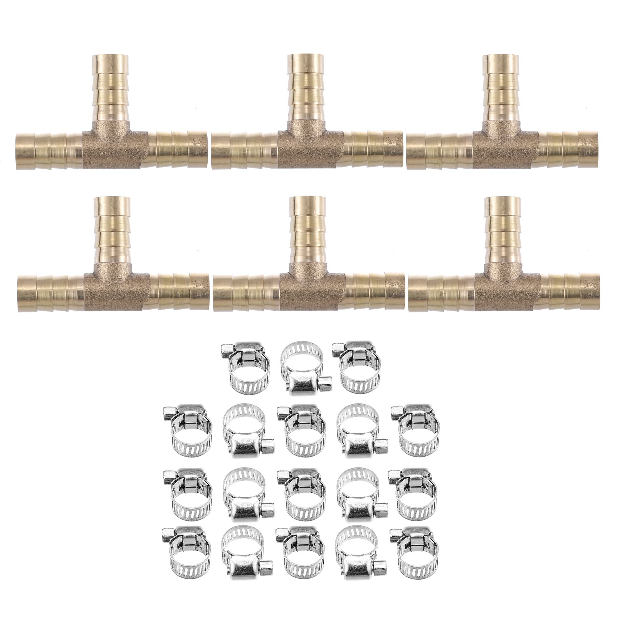 T 真鍮ホース継手コネクタ T字型ホースバーブ T有刺鉄線管継手 クランプ付き 10mm 6セット・・・