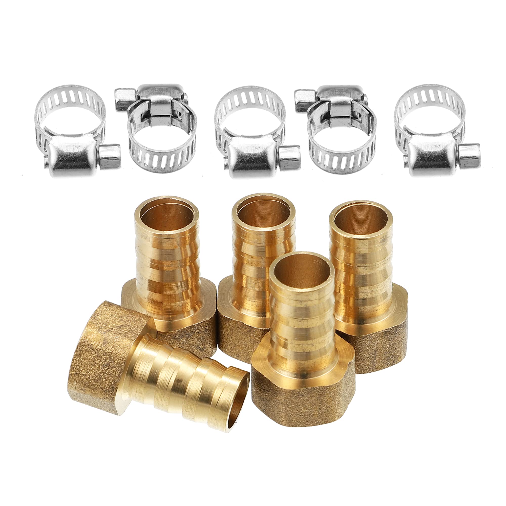 T 真鍮ホースソケット圧縮継手 ホースバーブテールメスネジアダプター クランプ付 12 mm外径 有・・・