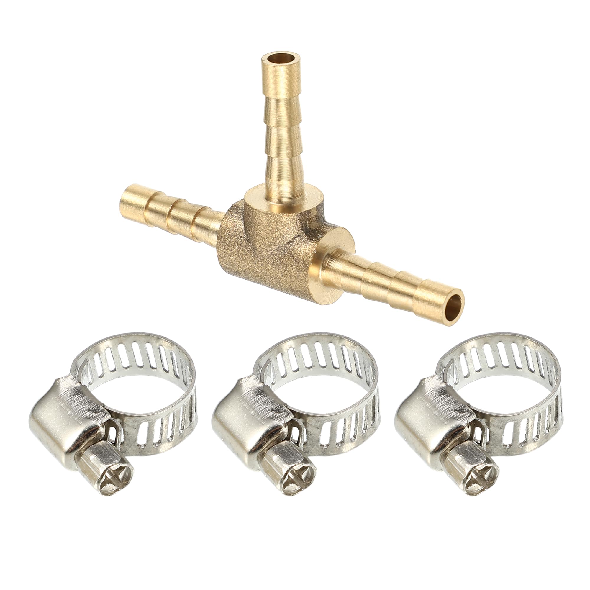 T 銅ホース継手コネクタ ホースバーブ 有刺鉄線管 パイプ継手 クランプ付き 4 mm Tシェイプ ・・・