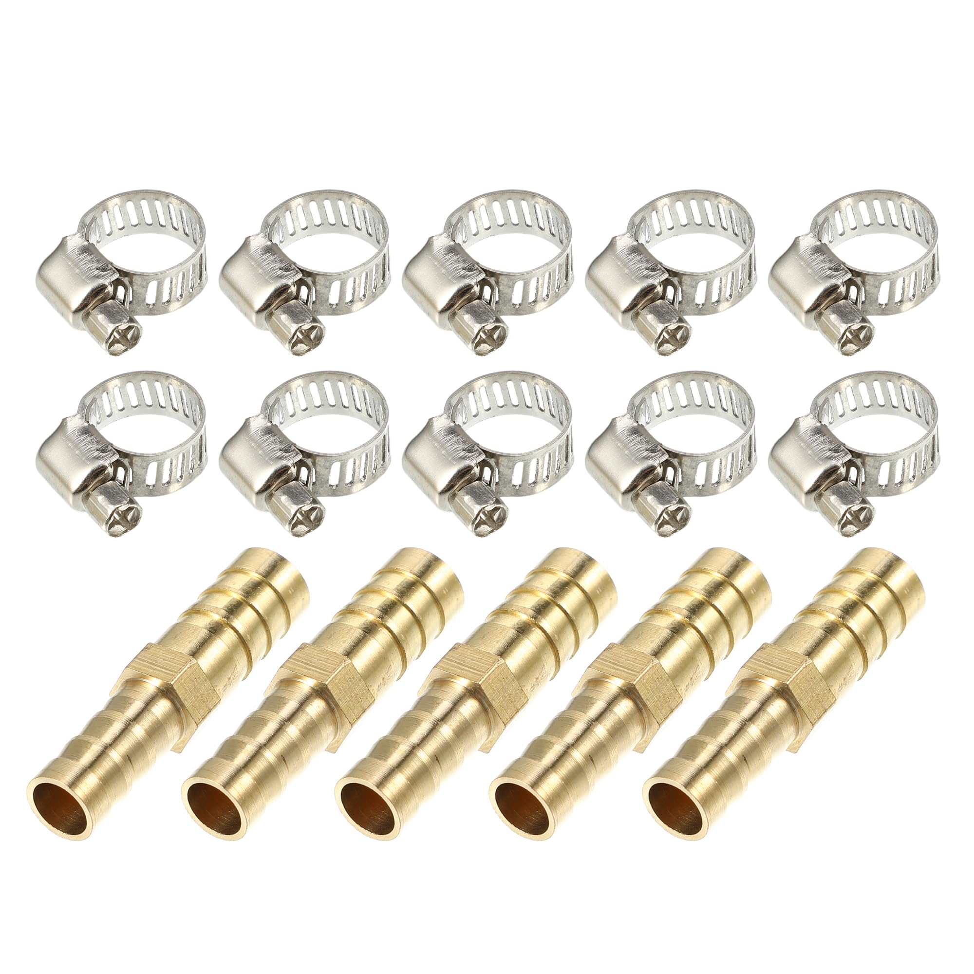 T銅ホース継手コネクタ ホースバーブ 有刺鉄線管 パイプ継手 クランプ付き 8-10 mm 5セット・・・