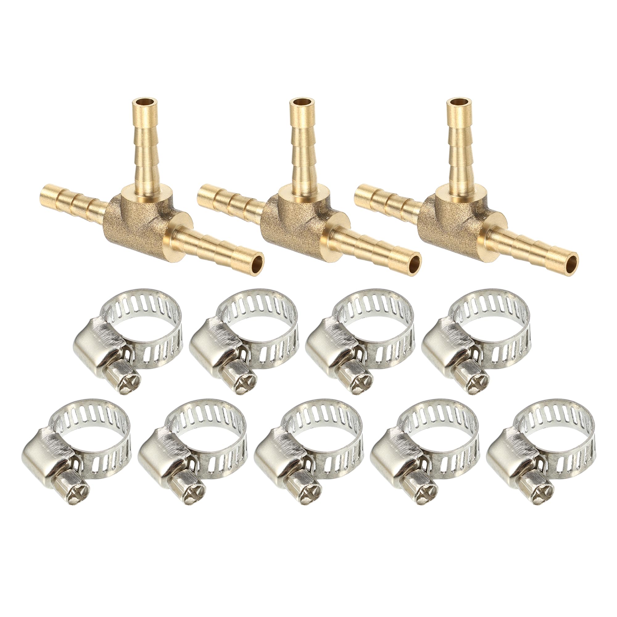 T銅ホース継手コネクタ ホースバーブ 有刺鉄線管 パイプ継手 クランプ付き 4 mm Tシェイプ 3・・・