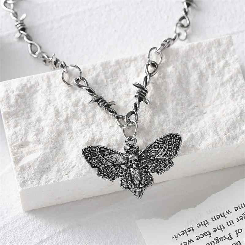ネックレス 男女兼用 スカル 蛾 いばら ゴシック パンク ヒップホップ 欧米風 有刺鉄線モチーフ ・・・