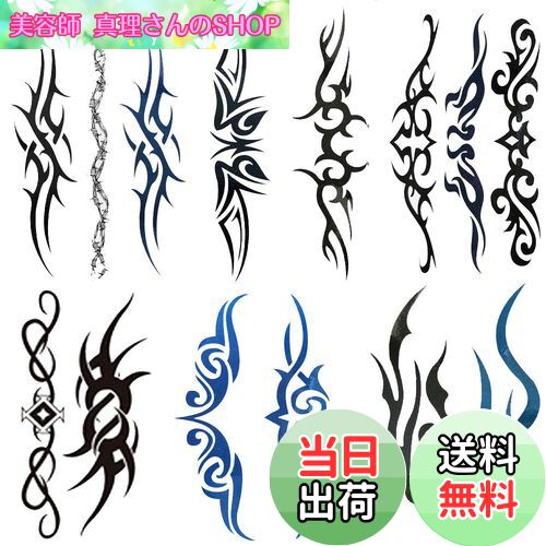 【送料無料】Yesallwas タトゥーシール トライバル 黒 青 鎖 有刺鉄線 腕輪 6枚セット 防水 メンズ レディース