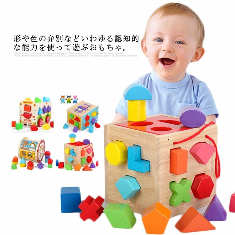 ブロック 木製 ボックス おもちゃ 赤ちゃん 感覚 色彩 立体 型はめおもちゃ 木のおもちゃ 積み木・・・