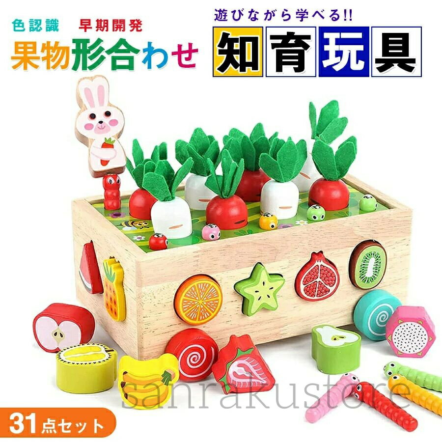 【31点セット】 おもちゃ 知育おもちゃ 木製 パズル モンテッソーリ教具 木のおもちゃ 積み木 型・・・