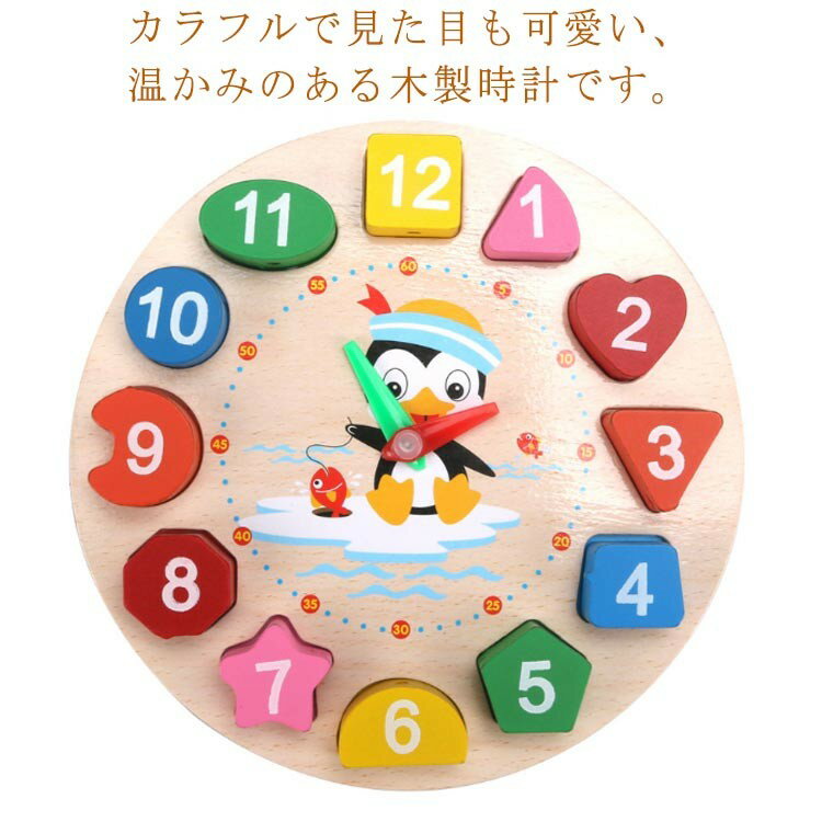 知育時計 型はめ かたはめ パズル 木製 知育玩具 時間 数字 木のおもちゃ 木製 知育おもちゃ