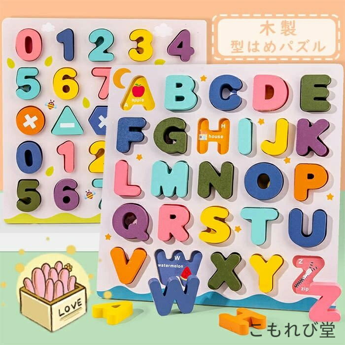 木製パズル 2点セット 英語パズル 数字パズル 子供 知育パズル 知育玩具 木のおもちゃ 型はめパズ・・・