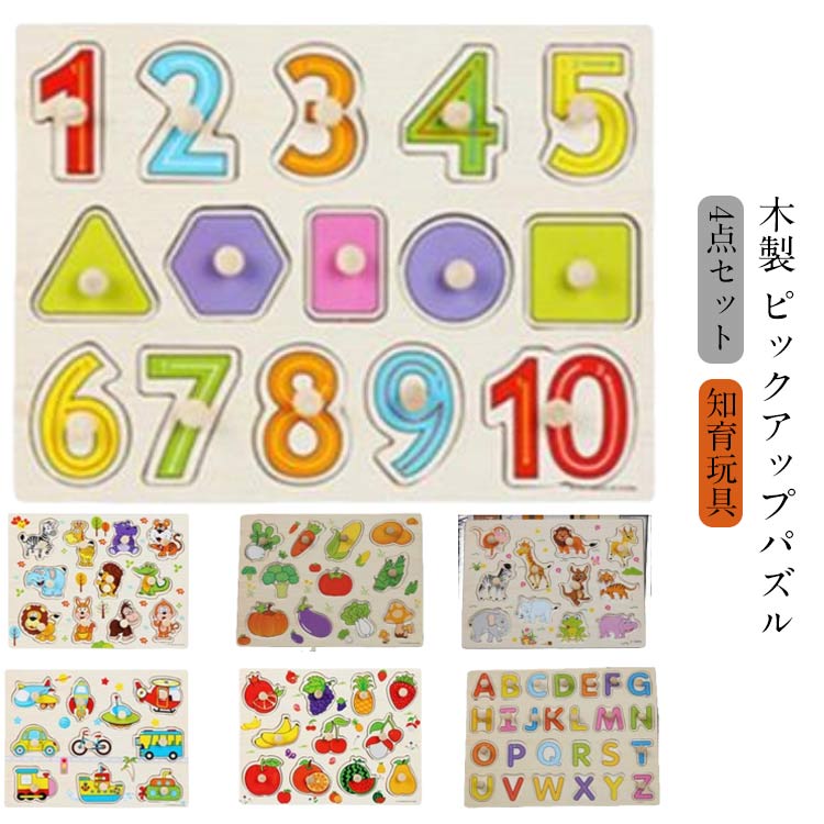 5点セット 型はめパズル 取っ手付き 木製パズル ベビー 知育玩具