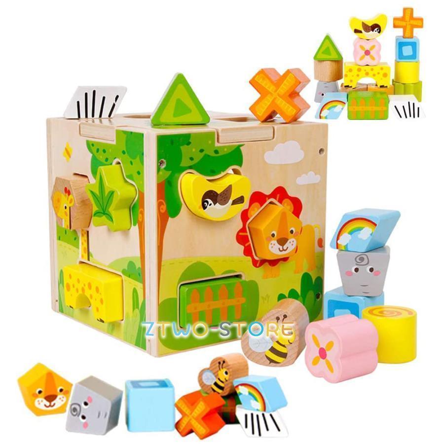 海の遊び箱 形認識 木製 形合わせ パズル 木のおもちゃ アクティビティキューブ 知育おもちゃ 5種・・・