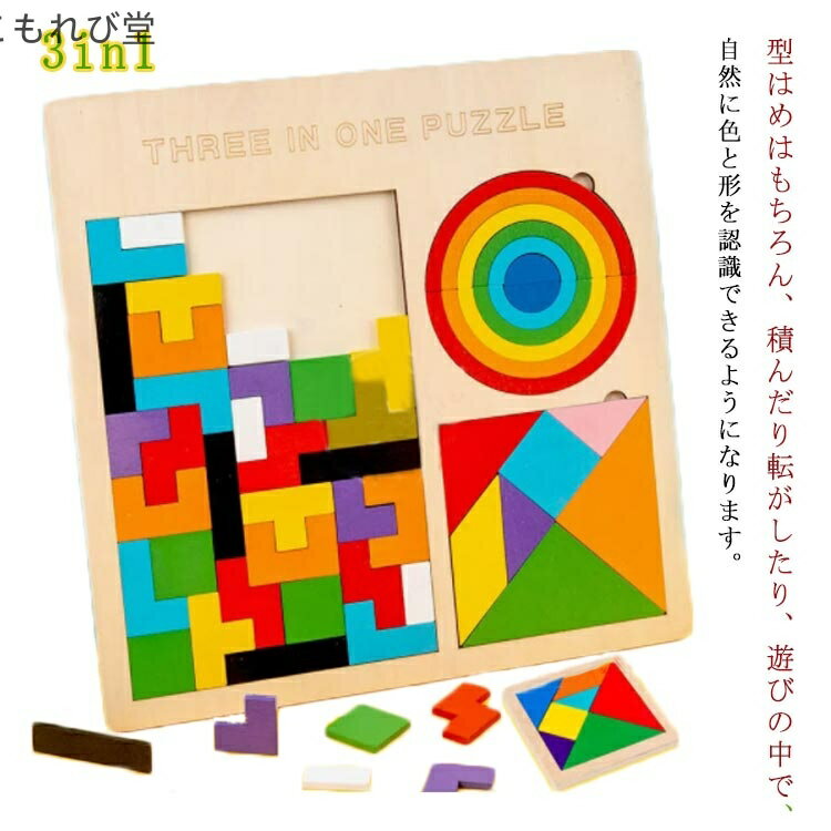 3点セット 型はめ パズル 木のおもちゃ モンテッソーリ 教具 教育 子ども 子供 幾何認知 形合わ・・・