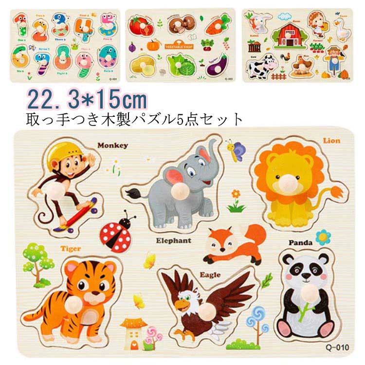 5点セット 型はめパズル 取っ手付き 木製パズル ベビー 知育玩具 ベビー 知育 おもちゃ 送料無料