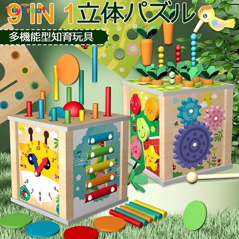モンテッソーリ 9in1木製おもちゃ 教育玩具 型はめ 立体パズル