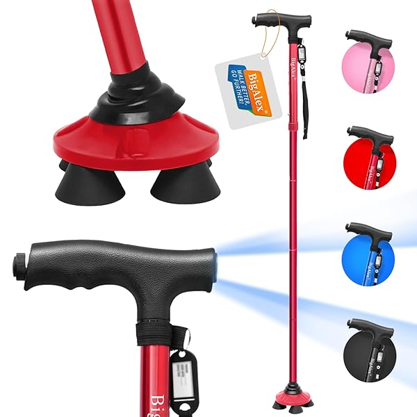 ビグアレクス()ステッキ 杖 折りたたみ杖 4本足 自立式 4点杖 男性用と女性用 LED ライト ・・・