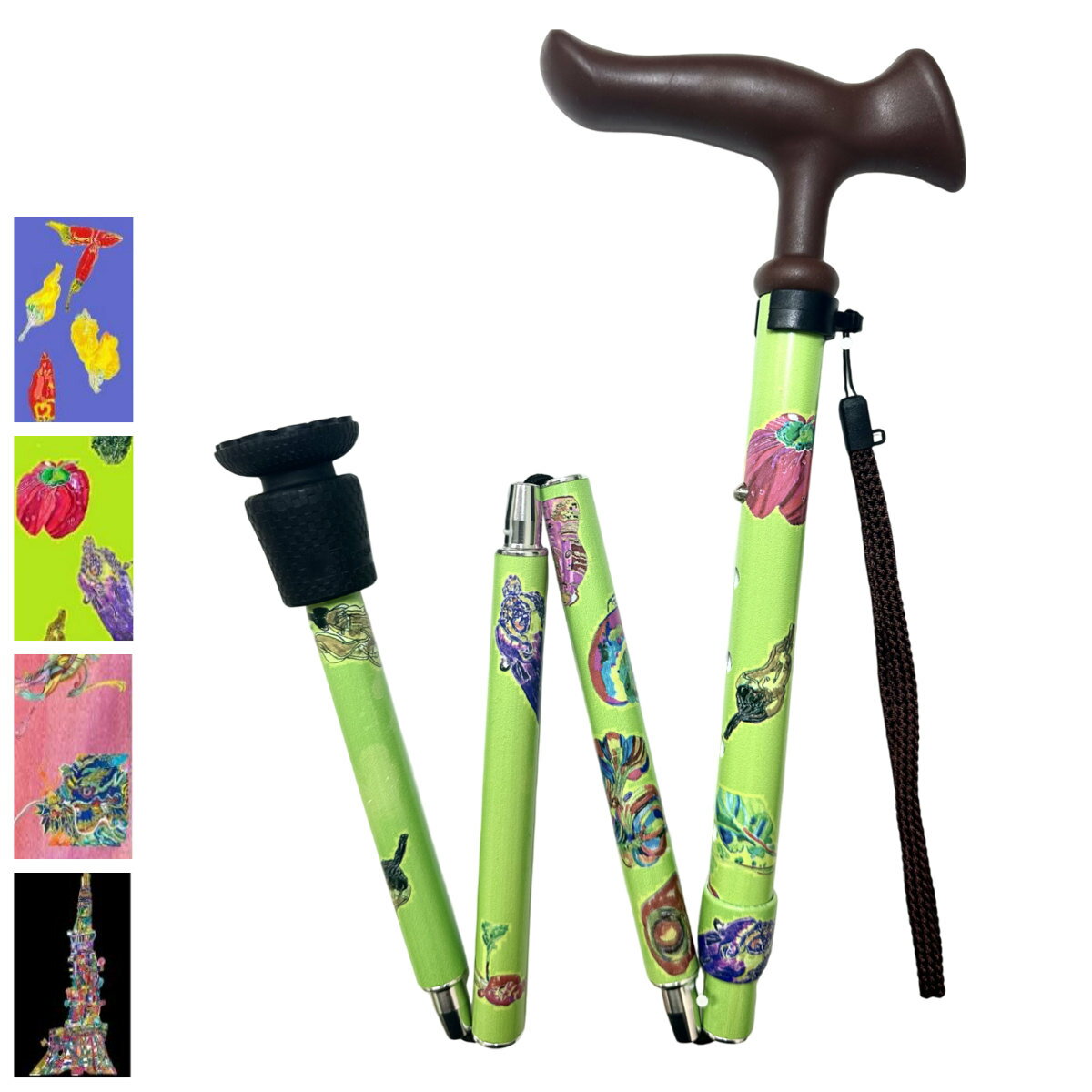 杖 折りたたみ 5段階調節 チャレンジドアートステッキ おしゃれ ( つえ ステッキ 軽量 女性 男・・・
