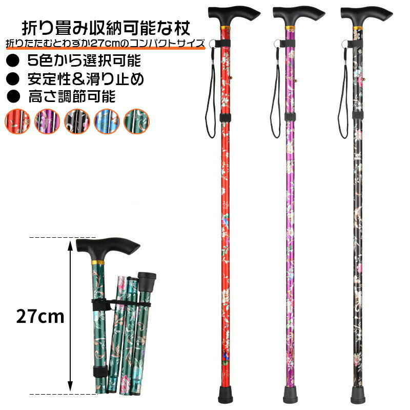驚きの軽さで日常散策から旅行まで負担ゼロの歩行サポート 杖 自立式 折りたたみ 伸縮 歩行補助 レディース 女性用 ステッキ 長さ調節