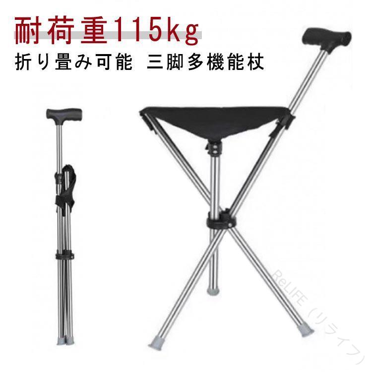 年寄り 男性 女性 休憩 滑り止め チェアー 歩行補助 ステッキ 自立式 椅子 イス 軽量 三脚 折・・・