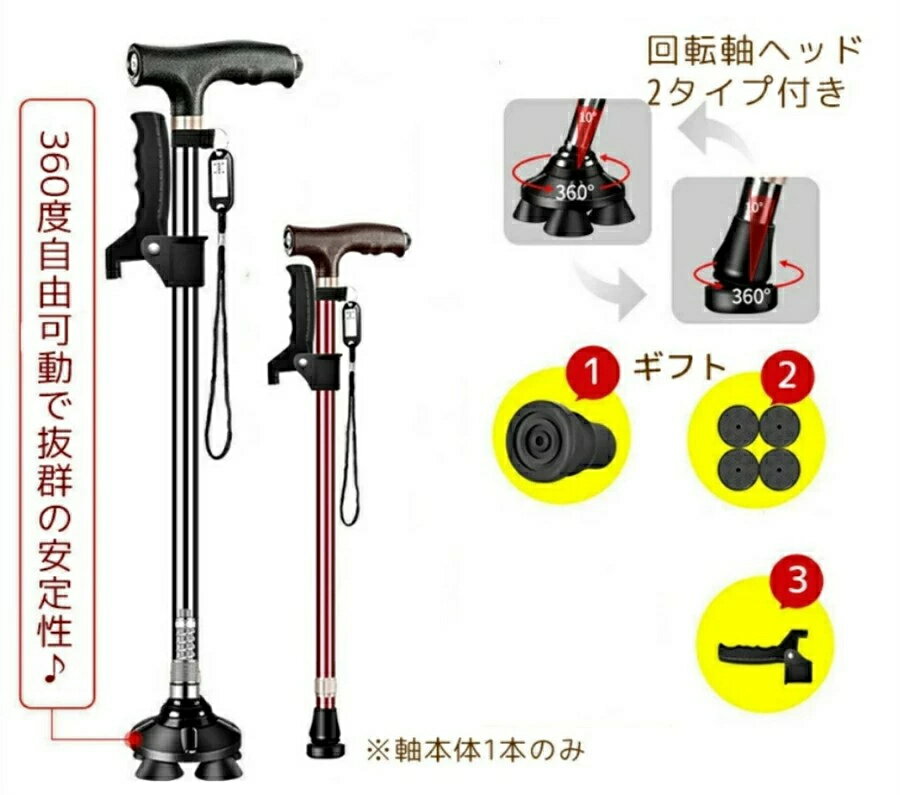 4本足 一本杖 老人杖 自立杖 介護ストック 老人用 自立式 軽量 女性 短い おしゃれ 歩行器 介・・・