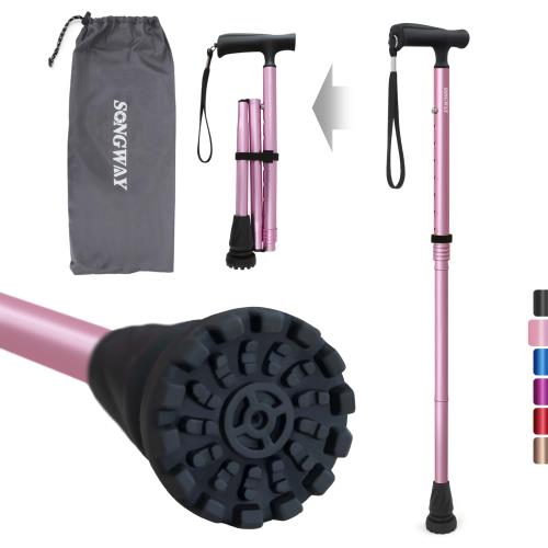 SONGWAY 杖 女性用 杖 男性用 ステッキ 紳士 折りたたみ杖 軽量 杖 おしゃれピンク・・・