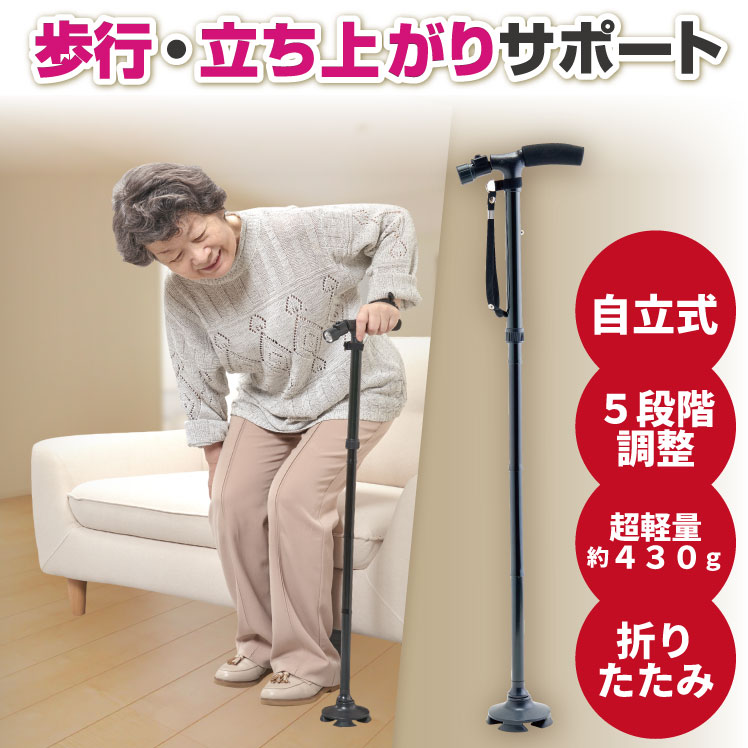 手を放しても倒れない!安定感抜群ライト付きステッキ