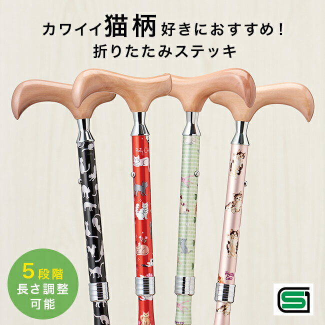 女性用 ねこ柄 伸縮杖 可愛い ウォーキング 高齢者 折りたたみ 女性 軽量 若者 低身長 ネコ柄 かわいい 折り畳み杖 折りたたみステッキ 伸縮杖 母の日 ギフト プレゼント