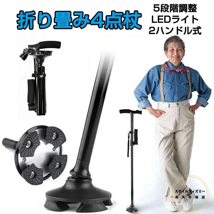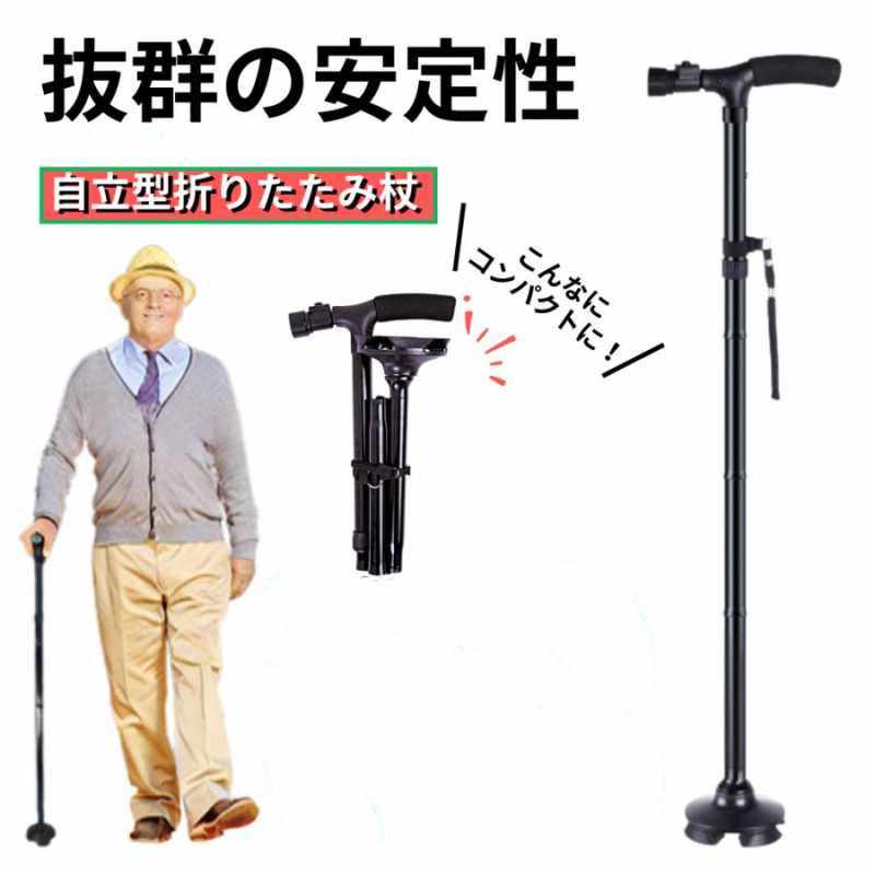 新生活 杖 自立式 男性 女性 ステッキ 4点杖 折りたたみ 軽量 5段階調節 伸縮式