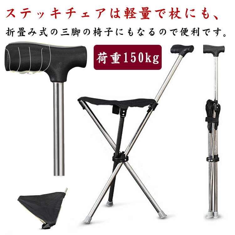 ステッキ チェアー イス ステッキチェア 椅子 イス 杖 折りたたみ 軽量 3本脚 休憩 女性 介護 座れる杖
