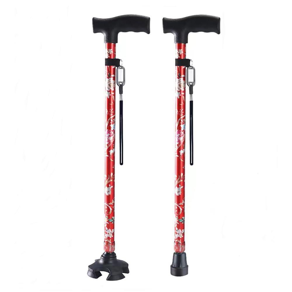 杖 自立式 軽量 女性用 つえ 介護 ステッキ おしゃれ 花柄 伸縮 伸縮式 自立式 自立杖 歩行補・・・