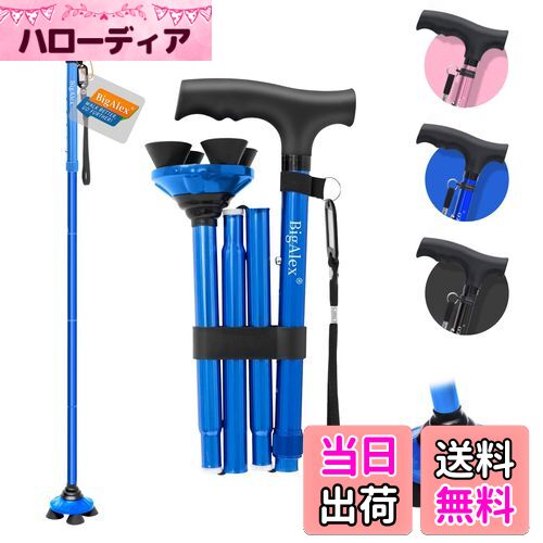 【送料無料】ビグアレクス(BigAlex)折りたたみ杖 ステッキ 自立杖 ブルー男性女性 5段階調節・・・