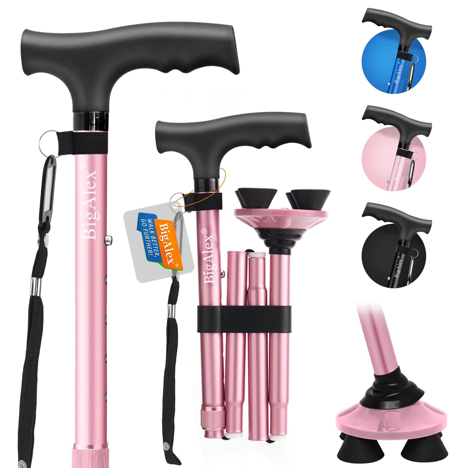 ビグアレクス(BigAlex)折りたたみ杖ステッキ自立杖ピンク女性5段階調節おしゃれ倒れない高齢者介・・・