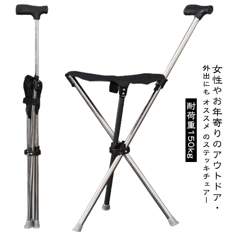 ステッキチェアーステッキチェア折り畳みステッキチェアステッキ折りたたみ椅子イスいす杖折り畳み小型コンパクトアウトドアチェア折りたたみ椅子