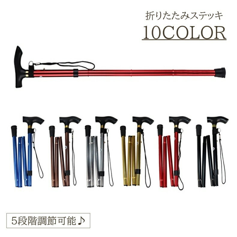 送料無料 折りたたみステッキ 杖 男性 女性 つえ 1本杖 伸縮 折り畳み 軽量 歩行 補助 サポー・・・