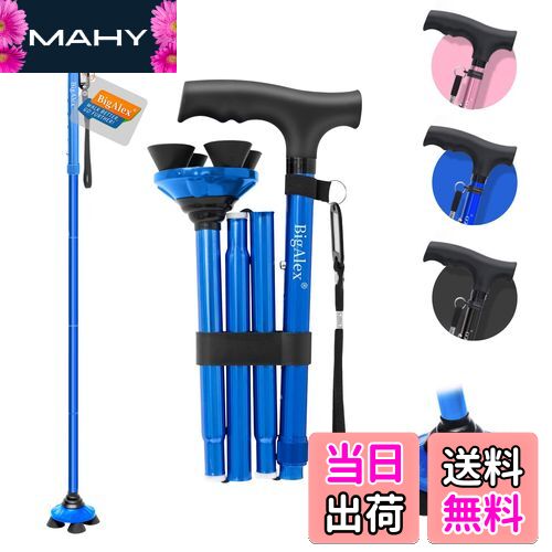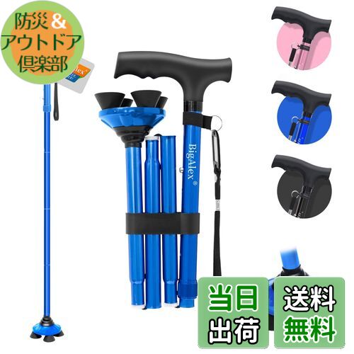 【送料無料】ビグアレクス(BigAlex)折りたたみ杖 ステッキ 自立杖 ブルー男性女性 5段階調節・・・