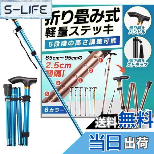 【送料無料】ビグアレクス(BigAlex)折りたたみ杖 ステッキ 自立杖 ブルー男性女性 5段階調節・・・