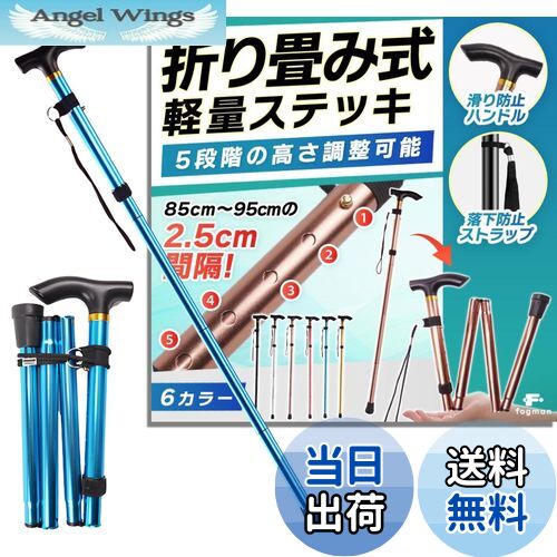 杖 折りたたみ 軽量 ステッ 女性 男女兼用 5段階長さ調節可能 男性 折り畳み式 アルミ製 伸縮 ・・・