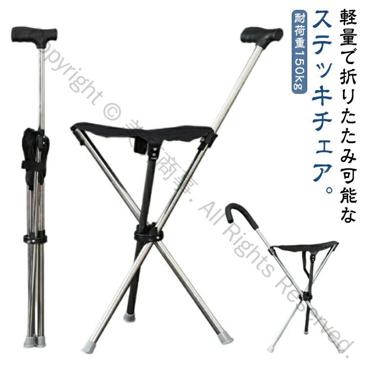ステッキチェア 折り畳み 軽量 3本脚 耐荷重150kg 介護用 お年寄り 高齢者向け 三脚杖 チェ・・・