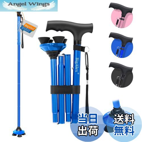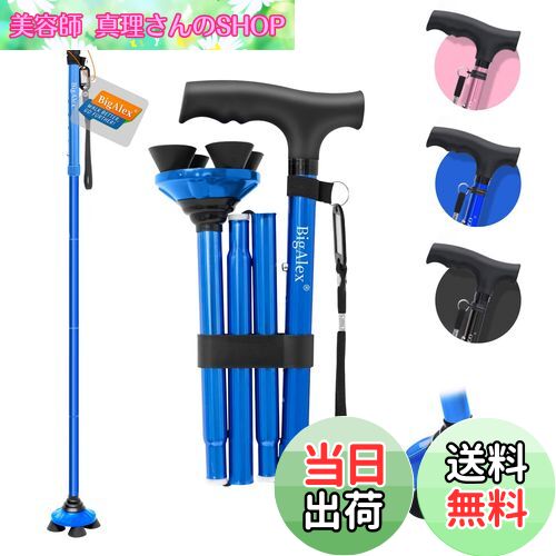 【送料無料】ビグアレクス(BigAlex)折りたたみ杖 ステッキ 自立杖 ブルー男性女性 5段階調節・・・