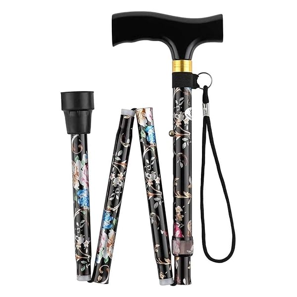 杖 折りたたみ 軽量 ステッキ 介護 男性 女性 おしゃれ 伸縮 4段階調整 (フラワーブラック)・・・