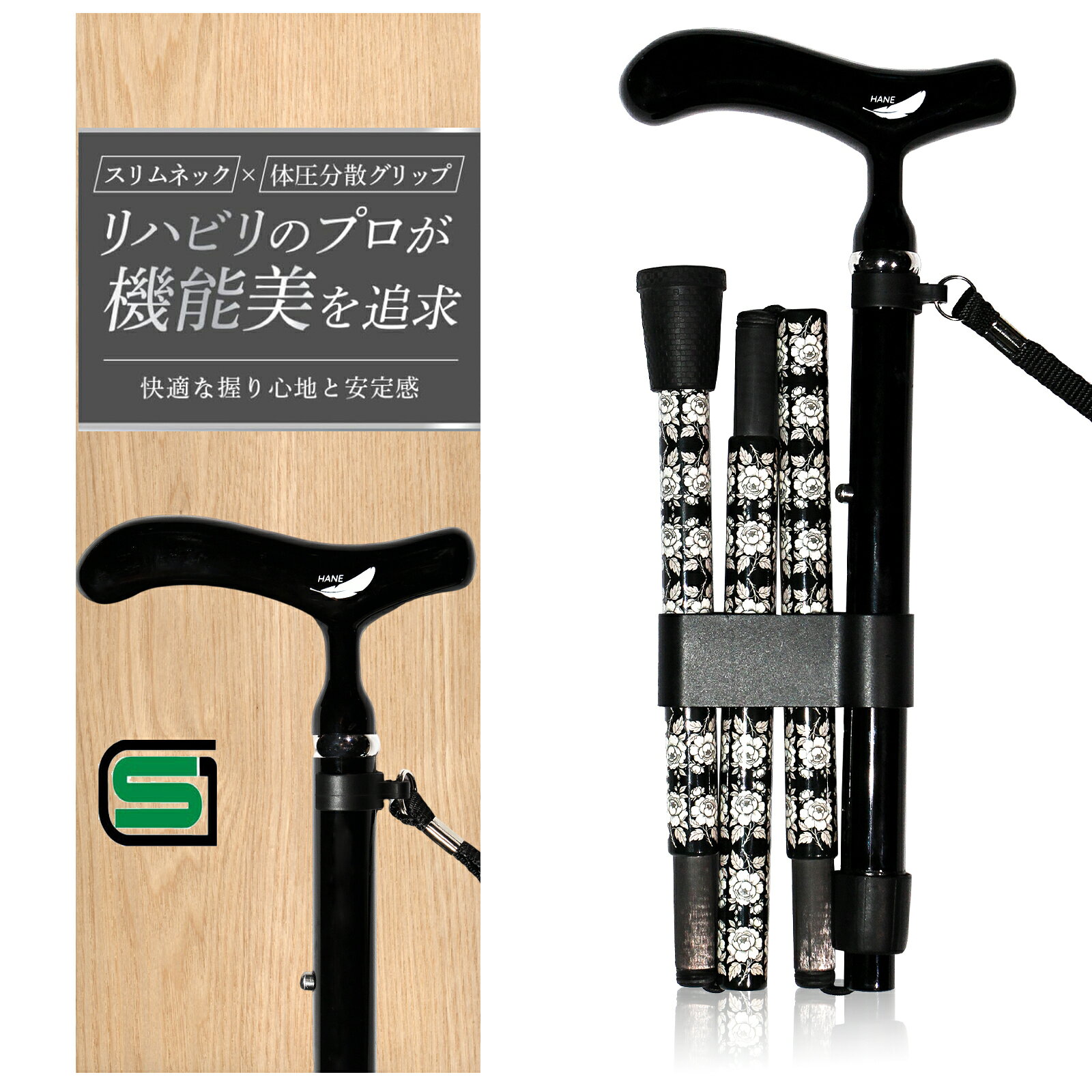杖 折りたたみ 伸縮ステッキ 高齢者 70代 80代 90代 軽量 女性 男性 伸縮式 歩行補助 花・・・