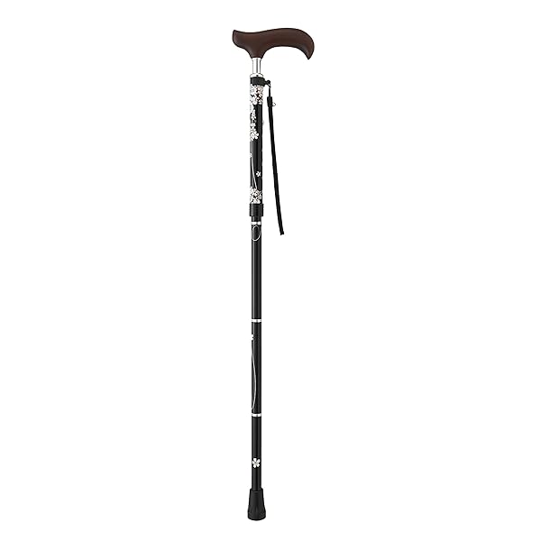 杖 折りたたみ 軽量 女性 ベーシック 折りたたみM 柄 おしゃれ 杖先ゴム ストラップ付き 母の日・・・