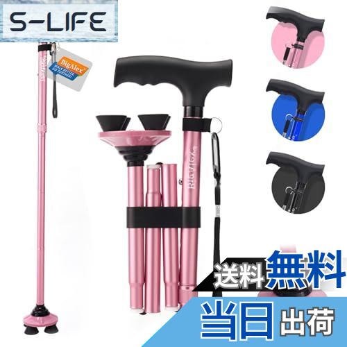 【送料無料】ビグアレクス(BigAlex)折りたたみ杖 ステッキ 自立杖 ピンク女性 5段階調節 お・・・