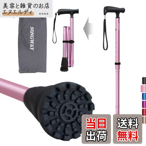 SONGWAY 杖 女性用 杖 男性用 ステッキ 紳士 折りたたみ杖 軽量 杖 おしゃれピンク・・・