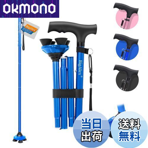 【送料無料】ビグアレクス(BigAlex)折りたたみ杖 ステッキ 自立杖 ブルー男性女性 5段階調節・・・