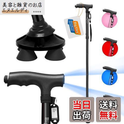 ビグアレクス(BigAlex)ステッキ 杖 折りたたみ杖 4本足 自立式 4点杖 男性用と女性用 L・・・