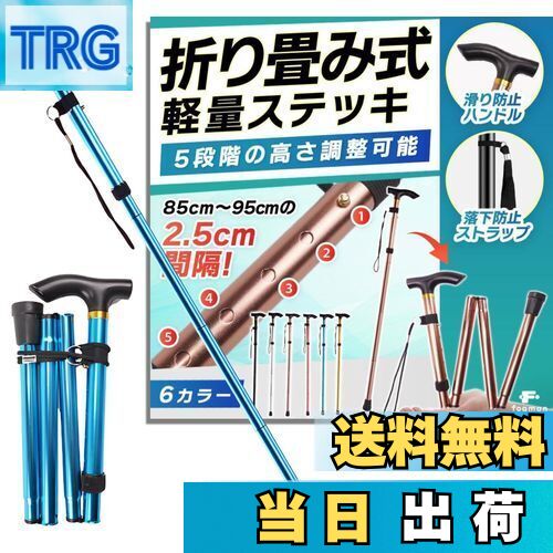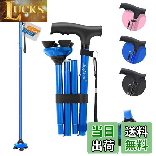【送料無料】ビグアレクス(BigAlex)折りたたみ杖 ステッキ 自立杖 ブルー男性女性 5段階調節・・・