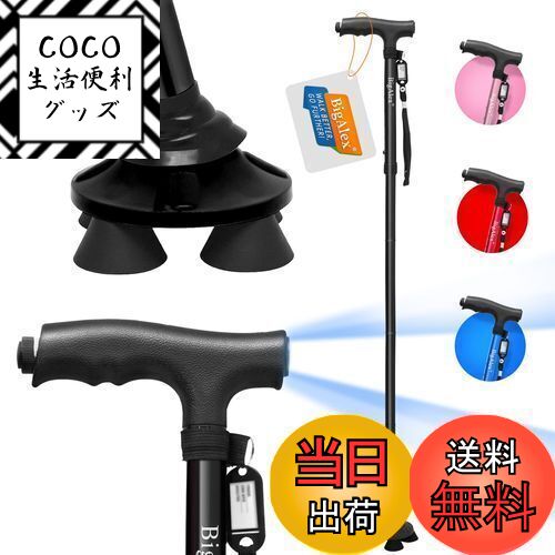 ビグアレクス(BigAlex)折りたたみ杖 ステッキ 自立杖 ブラック男性女性 5段階調節 おしゃれ・・・