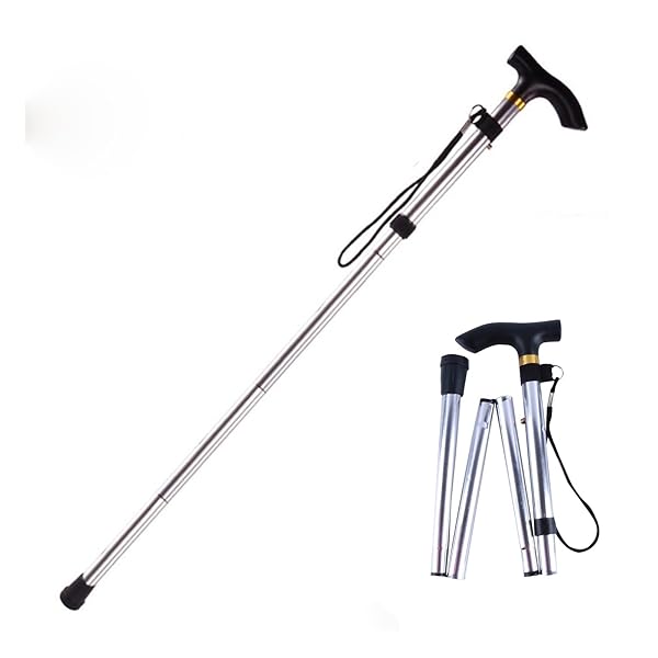 杖 折りたたみ 軽量 ステッキ 介護 男性 女性 おしゃれ 伸縮 4段階調整 (シルバーホワイト)・・・