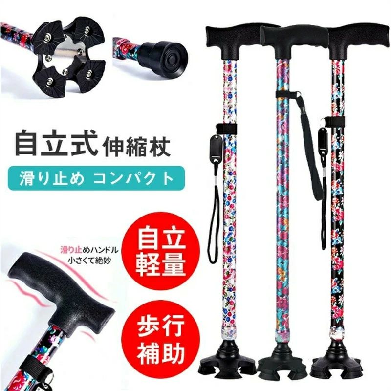 杖 おしゃれ 自立式 自立杖 つえ 介護 自立 軽量 伸縮 歩行補助 レディース 女性用 女性 敬老・・・