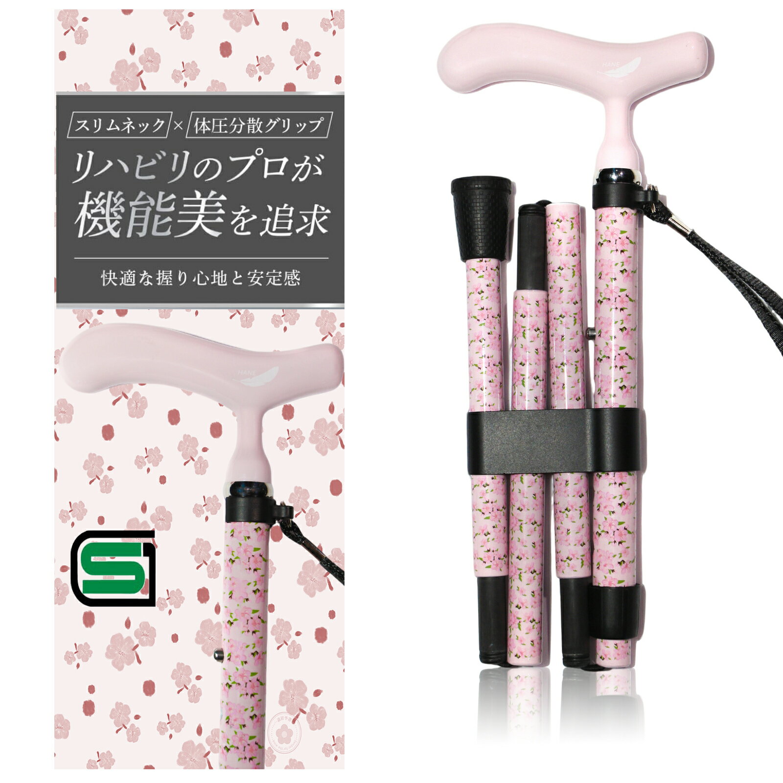 杖 折りたたみ 軽量 ステッキ 介護 男性 女性 おしゃれ 伸縮 4段階調整 (桜花)・・・