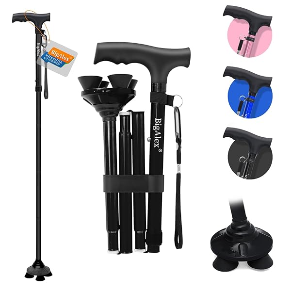 ビグアレクス()ステッキ 杖 折りたたみ杖 4本足 自立式 4点杖 男性用と女性用 LED ライト ・・・