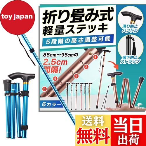 送料無料 杖 ステッキ 折りたたみ ストラップ付き 伸縮 長さ調整可 軽量 滑り止め 握りやすい 持・・・